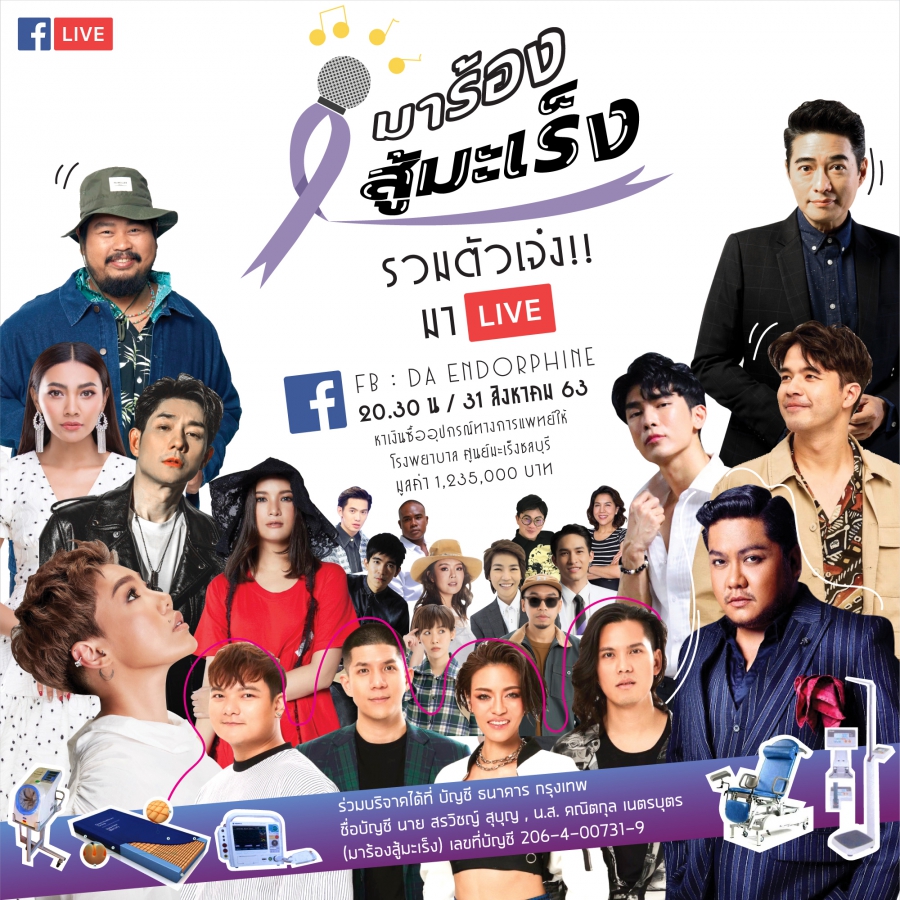 “มาร้อง สู้ มะเร็ง” รวมศิลปินตัวเจ๋ง มา LIVE กันใน fb: Da Endorphine 2 ทุ่มครึ่ง จันทร์ที่ 31 สิงหาคม นี้ !!!