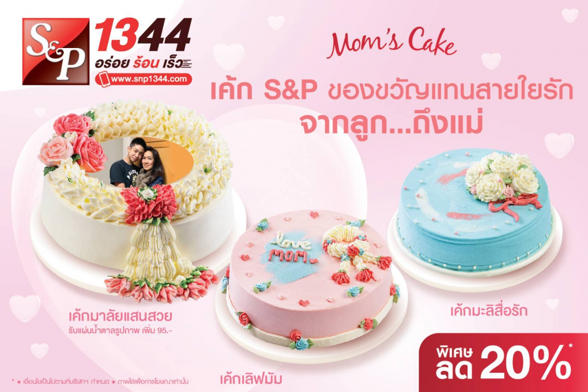 ต้อนรับเทศกาลวันแม่ ให้เค้ก ‘เอส แอนด์ พี’ เป็นของขวัญแทนสายใยรักจากลูก..ถึงแม่ เอส แอนด์ พี ได้รังสรรค์เค้กแสนอร่อยหลากหลายดีไซน์เฉพาะช่วงโอกาสพิเศษ เพื่อแสดงถึงความรัก ความอบอุ่น และความประทับใจจากลูกถึงแม่ อาทิ เค้กมะลิสื่อรัก / เค้กมะลิร้อยรัก / เค้กเลิฟมัม และเค้กมาลัยแสนสวย