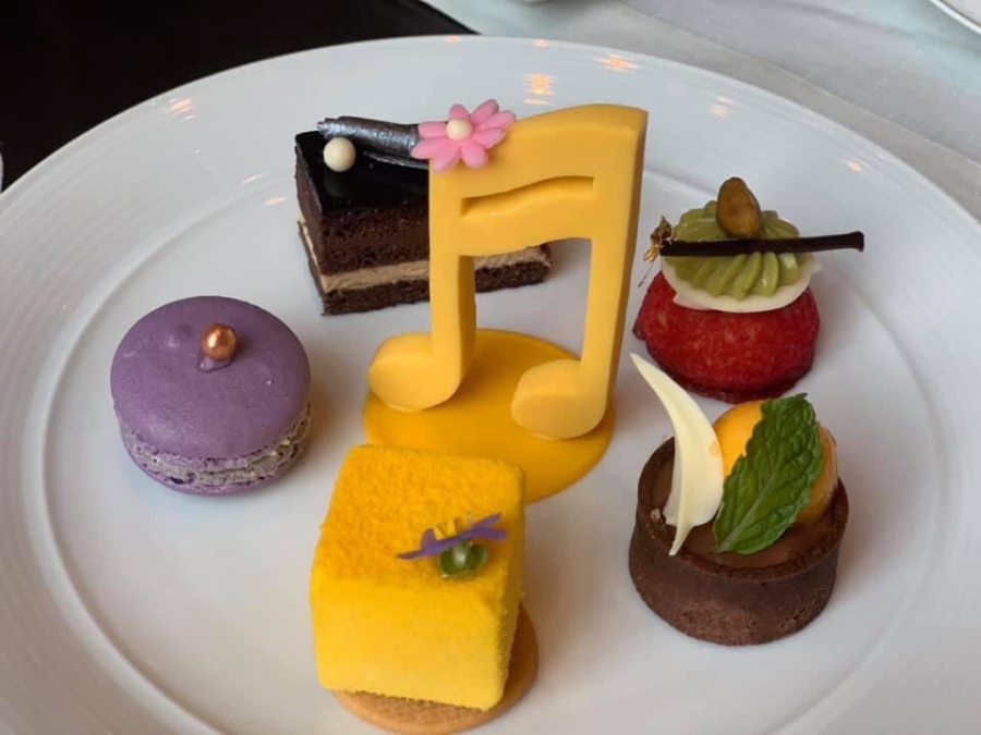 เมนูขนมหวานแสนอร่อยประกอบไปด้วย ชูครีมสตรอเบอรี่และถั่วพิสตาชิโอ บลูเบอร์รีมาการองสอดไส้ไวท์ช็อกโกแลตวิปครีม เค้กโอเปร่ากับครีมกาแฟเอสเพรสโซและช็อคโกแลตกานาช เค้กเสาวรสและสตรอว์เบอร์รีทรงมินิคิวบ์ เค้กชิฟฟ่อนนิ่มฟู กูเกลฮอฟ (Gugelhupf) สไตล์เยอรมันและอื่น ๆ อีกมากมาย