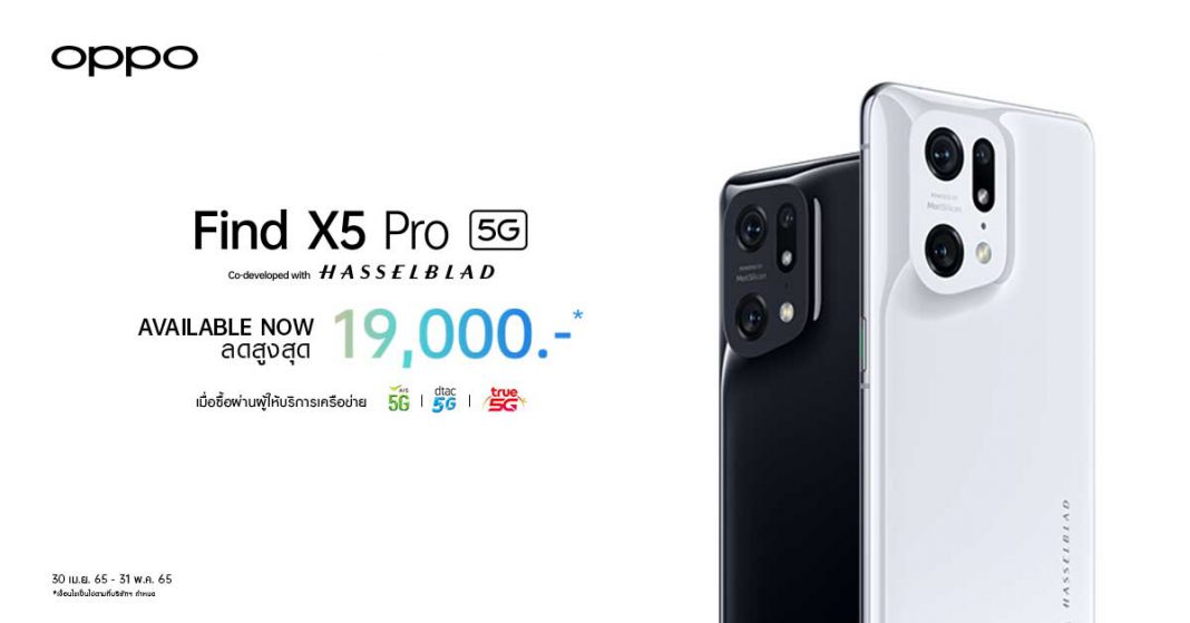 OPPO Find X5 Pro 5G วางจำหน่ายแล้วอย่างเป็นทางการ พร้อมจับมือ AIS, ดีแทค, ทรูมูฟ เอช มอบส่วนลดสูงสุด 19,000 บาท ถึง 31 พ.ค. นี้!