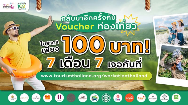 สำหรับกิจกรรม “Workation Thailand 100 เดียวเที่ยวได้งาน” จะเป็นการนำเสนอขายบัตรกำนัล (Voucher) สินค้าและบริการด้านการท่องเที่