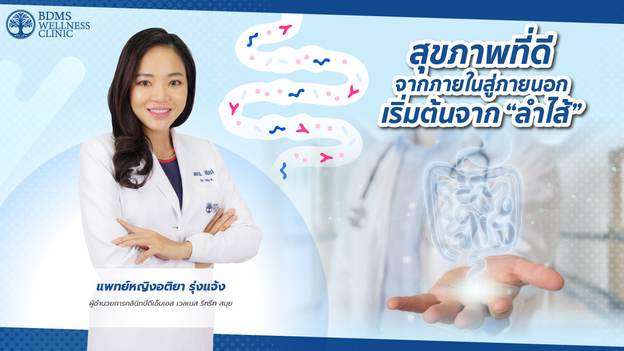 แพทย์หญิงอติยา รุ่งแจ้ง ผู้อำนวยการคลินิกบีดีเอ็มเอส เวลเนส รีทรีท สมุย กล่าวว่า โรคทุกโรคเริ่มต้นที่ลำไส้ การดูแลลำไส้เลยมีความสำคัญมากขึ้นในปัจจุบัน ถ้าลำไส้ของเราเสียสมดุลไปหรือว่ามีจุลินทรีย์บางตัวที่มันเสียสมดุลไป อาจเป็นจุดเริ่มต้นของการเกิดโรคต่าง ๆ ได้เหมือนกัน ซึ่งเรื่องของการกินที่สมดุลนั้นเป็นสิ่งที่สำคัญมาก การตรวจจุลินทรีย์ในลำไส้ (Gut Microbiome) จะทำให้ได้คำตอบมากขึ้นว่า ทำไมดูแลตัวเองดีแล้ว… แต่ก็ยังเจอปัญหาสุขภาพ ซึ่งการตรวจจุลินทรีย์จะแบ่งเป็น 3 รูปแบบ ได้แก่ จุลินทรีย์ทั่วไป ที่อาจจะส่งผลดีหรืออาจจะส่งผลไม่ดีกับร่างกายก็ได้ขึ้นอยู่กับความสมดุล จุลินทรีย์ที่ไม่ดี ก่อโรค เป็นจุลินทรีย์ที่ถ้ามีเยอะเกินไปก็ทำให้เกิดโรคต่างๆ เช่น ท้องเสีย ถ่ายเหลว เป็นต้น และ จุลินทรีย์ที่ดีหรือโพรไบโอติก (Probiotics) ที่สร้างสารมีประโยชน์ต่อร่างกายในระบบลำไส้ หรืออวัยวะอื่น ๆ หากเกิดความเครียด ใช้ร่างกายหักโหม การกินที่ผิดปกติ โพรไบโอติกกลุ่มที่ดี ๆ มักจะโดนทำร้ายไปก่อนและก็จะเสียสมดุลไปก่อนได้ ซึ่งการดูแลโพรไบโอติกที่สำคัญคือการเลือกรับประทานอาหาร เช่น อาหารที่มีไฟเบอร์ ผักและผลไม้ที่มีรสไม่หวาน ถ้าเป็นผลไม้อาจจะต้องเป็นกลุ่มที่มีกากใยอาหารเยอะ เช่น ฝรั่ง มะม่วงเขียว หรือ อาหารในการหล่อเลี้ยงโพรไบโอติก เช่น กิมจิ นัตโตะ ชาคอมบูชา เป็นต้น ข้อจำกัดเดียวในอาหารไทยจะมีพวกนี้น้อยเลยเป็นเหตุผลที่ว่าทำไมคนไทยอาจจะเจอปัญหาเรื่องขาดโพรไบโอติกได้ง่าย เพราะเราไม่ได้มีอาหารกลุ่มนี้ในมื้ออาหารของเรามากนัก