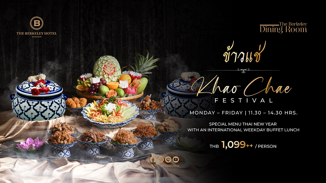 ติดต่อสำรองที่นั่งหรือสั่งข้าวแช่ โทร 02 309 9999 ต่อ 3134 (บุฟเฟต์นานาชาติมื้อกลางวัน) หรือ 3029 (ชุดข้าวแช่ Take away)