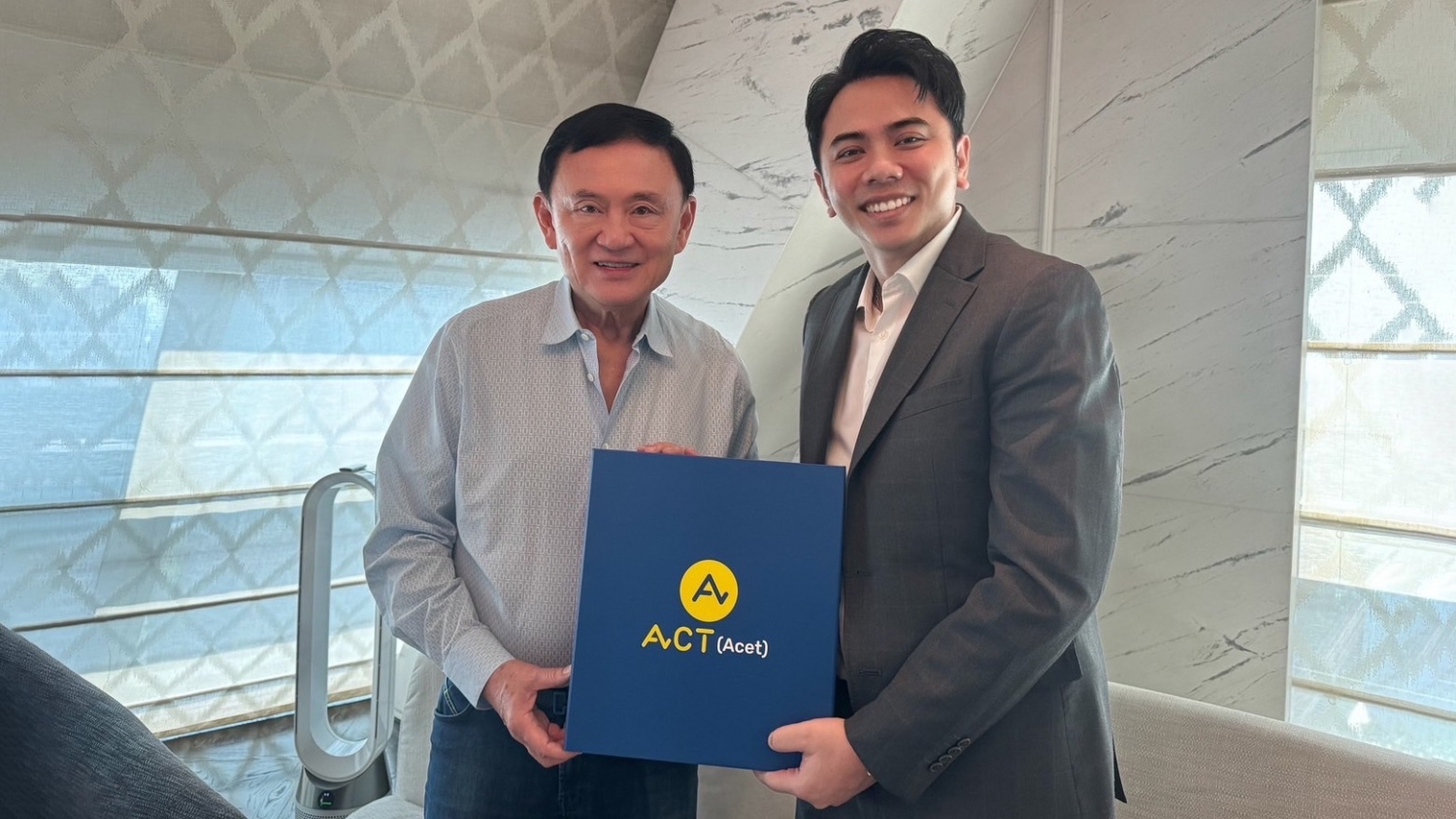 แอ็คมี่-DoubleDeep ศิลปินและนักธุรกิจมากความสามารถ วันก่อนโพสต์เฟสบุ๊กให้แฟนเพจทายกันมาว่าจะเอาของขวัญไปมอบให้ใคร แฟน ๆ ก็เดากันใหญ่แต่ไม่มีใครเดาถูก มาวันนี้คำตอบที่ถูกต้องก็เฉลยผ่านทางเฟสบุ๊กอีกครั้ง ด้วยการอวดซีนประกบกับ นายกคนที่ 23 ของไทย นั่นคือ ทักษิณ ชินวัตร