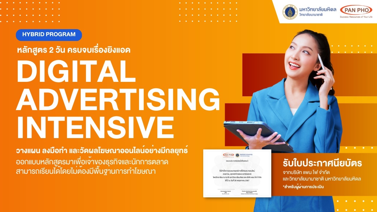 หลักสูตรที่ 2: Digital Advertising Intensive หลักสูตรครบจบเรื่องการทำโฆษณาออนไลน์ใน 2 วัน โดยผู้เรียนจะได้เข้าใจกระบวนการคิดกลยุทธ์การซื้อโฆษณาออนไลน์ ทั้งในเชิงทฤษฎีและปฎิบัติ เข้าใจภาพรวมของการซื้อสื่อโฆษณาและสามารถลงมือทำโฆษณาออนไลน์ได้อย่างมีระบบและนำไปต่อยอดได้จริง บนแพลตฟอร์มต่าง ๆ อาทิ Google, Facebook เป็นต้น หลักสูตรนี้เหมาะสำหรับเจ้าของธุรกิจและนักการตลาดมือใหม่ที่ต้องการเริ่มต้นเข้าสู่โลกของการเป็น “นักซื้อสื่อโฆษณาออนไลน์” สามารถเรียนได้แม้ไม่มีพื้นฐานการทำโฆษณาออนไลน์มาก่อน สามารถศึกษารายละเอียดเพิ่มเติมได้ที่ https://panpho.co/dai