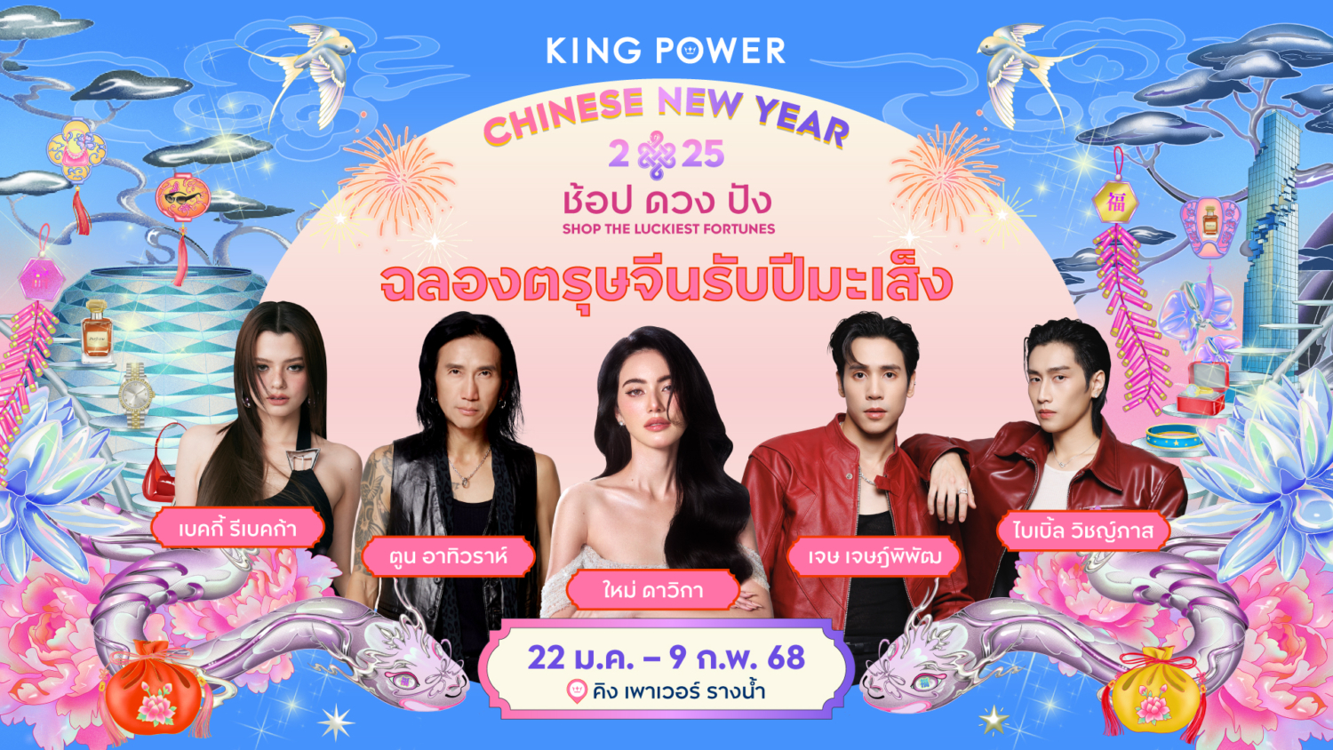 คิง เพาเวอร์ ยกทัพศิลปินฉลองสุดปังต้อนรับปีมะเส็งมหามงคล ในงาน “KING POWER CHINESE NEW YEAR 2025 ช้อป ดวง ปัง SHOP THE LUCKIEST FORTUNES” พบกับขบวนพาเหรดตรุษจีนสุดอลังการบนถนนรางน้ำ พร้อมสัมผัสการแสดงแห่งปี “THE GUARDIANS OF HARMONY: RISE OF SERPENT” โชว์พญานาคาลอยฟ้ายาว