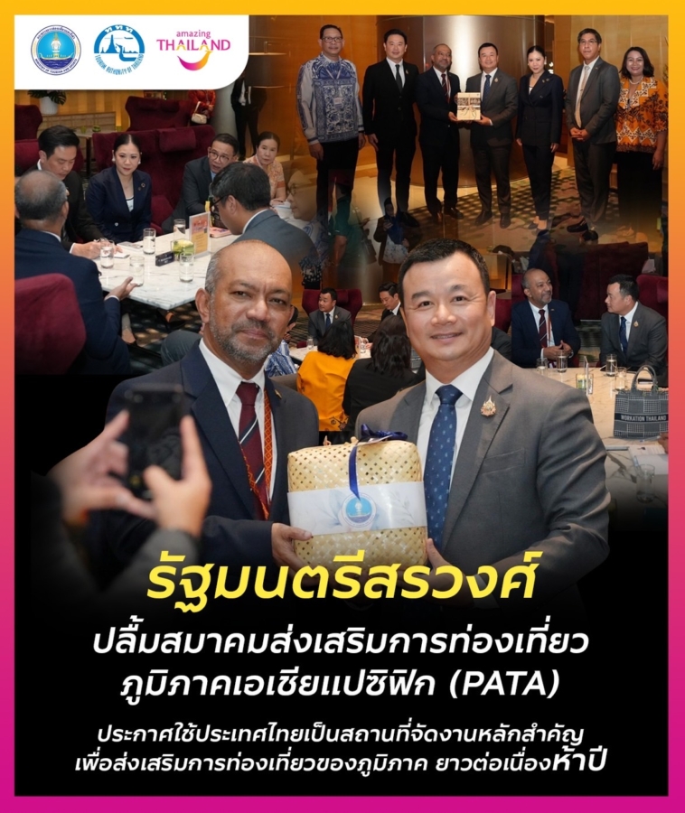 รัฐมนตรีสรวงศ์ฯ ปลื้มสมาคมส่งเสริมการท่องเที่ยวภูมิภาคเอเชียแปซิฟิก (PATA) ประกาศใช้ประเทศไทยเป็นสถานที่จัดงานหลักสำคัญเพื่อส่งเสริมการท่องเที่ยวของภูมิภาค ยาวต่อเนื่องห้าปี