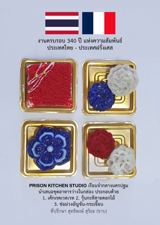 ดร.ขวัญไชย สันติภราภพ ผู้บัญชาการเรือนจำกลางนครปฐม ได้มอบหมายให้นางเครือวรรณ์ บุญญาธนานุรัตน์ ผู้อำนวยการส่วนพัฒนาผู้ต้องขัง เรือนจำกลางนครปฐม พร้อมด้วยนางสาวบวรรัตน์ สุวรรณประเสริฐ ผู้อำนวยการสถานกักกันนครปฐม นำเจ้าหน้าที่และผู้ต้องขัง ร่วมออกบูธเพื่อแสดงและจำหน่ายผลิตภัณฑ์ราชทัณฑ์ และจัดชุดอาหารว่างที่มีสไตล์ในธีมสีธงชาติฝรั่งเศส ฝีมือผู้ต้องขังเรือนจำกลางนครปฐม ในงาน“เสวนารำลึก 340 ปี ความสัมพันธ์ไทย – ฝรั่งเศส” ณ วิเทศสโมสร กระทรวงการต่างประเทศ เพื่อส่งเสริมการพัฒนาพฤตินิสัย ด้านการฝึกวิชาชีพ เป็นการเผยแพร่ภารกิจด้านพัฒนาพฤตินิสัย และประชาสัมพันธ์ผลงานการฝึกวิชาชีพของผู้ต้องขังสู่สังคม นอกจากนี้ คุณสุทธิพงษ์ สุริยะ ผู้ก่อตั้งพิพิธภัณฑ์ชุมชนมีชีวิต จังหวัดบึงกาฬ ได้เข้าร่วมเสวนา Soft Power และการพัฒนามรดกทางวัฒนธรรมสู่เวทีโลก:มุมมองของฝรั่งเศสและไทย ก็ได้นำผลิตภัณฑ์สินค้าชุมชน จังหวัดบึงกาฬ มาร่วมแสดงและจำหน่ายภายในงาน โดยมีแขกผู้มีเกียรติเข้าร่วมงานคับคั่ง อาทิ หม่อมราชวงศ์วไลวัฒนา สวัสดิ์-ชูโต,คุณเกรียงไกรมาศ พจนสุทร,คุณวรวรรณ ติณสูลานนท์, คุณนันทินี พิธานสมบัติ ฯลฯ