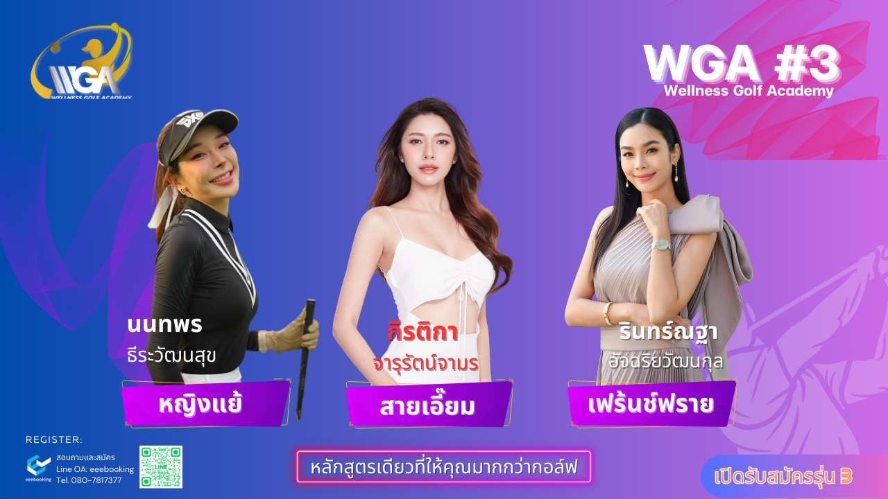 ผู้ที่สนใจสามารถลงทะเบียน หรือสอบถามรายละเอียดเพิ่มเติมได้ที่ Line Official Account: @eeebooking หรือติดตามข้อมูลข่าวสารได้ที่ Facebook Page : Wellness golf academy