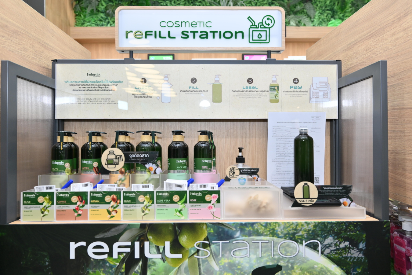 โดยลูกค้าที่สนใจสามารถนำขวดของผลิตภัณฑ์ Naturals by Watsons ที่ล้างสะอาดแล้วมาเติมผลิตภัณฑ์ได้ในราคาเพียง 55 บาทต่อขวด 490 มิลลิลิตร หรือหากไม่มีขวดเปล่า สามารถซื้อขวดเปล่าใหม่ได้ในราคาเพียง 20 บาทต่อขวด พร้อมทั้งมีการอำนวยความสะดวกติดฉลากและระบุรายละเอียดวันที่ผลิตและวันหมดอายุเพื่อความปลอดภัย ตามมาตรฐานที่หน่วยงาน อย.กำหนด