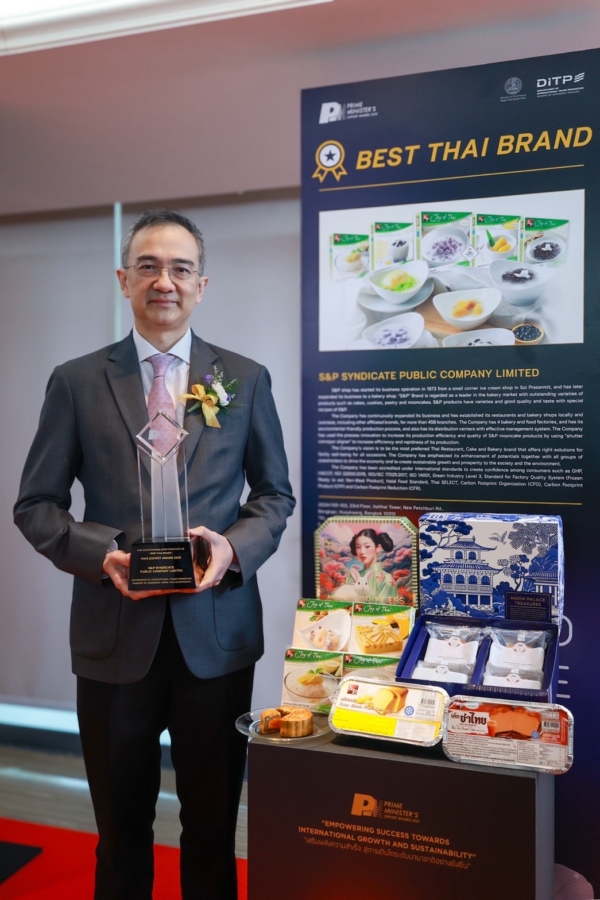 รางวัลอันทรงเกียรตินี้ สะท้อนความมุ่งมั่นของ เอส แอนด์ พี ในฐานะผู้นำธุรกิจอาหารและเบเกอรี่ของไทย ในการสร้างสรรค์ผลิตภัณฑ์และบริการให้มีคุณภาพมาตรฐาน พร้อมร่วมขับเคลื่อนแบรนด์ไทยให้เป็นที่ยอมรับในระดับนานาชาติ