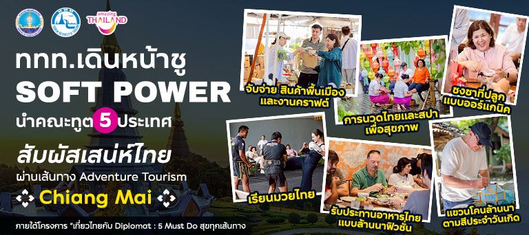 การท่องเที่ยวแห่งประเทศไทย (ททท.) เดินหน้าส่งต่อ “เสน่ห์ไทย” สู่การท่องเที่ยวการทูตในเส้นทางที่ 3 Adventure Tourism – Chiang Mai นำคณะทูต 5 ประเทศ ได้แก่ อิตาลี ปากีสถาน คิวบา โปรตุเกส และฮังการี ออกเดินทางภายใต้โครงการ “เที่ยวไทยกับ Diplomat 5 Must Do สุขทุกเส้นทาง” ซึ่งมุ่งใช้การท่องเที่ยวเป็นกลไกเชื่อมสัมพันธ์ทางการทูต สร้างความเข้าใจ และมิตรภาพที่ยั่งยืน ผ่าน Soft Power เสน่ห์ไทย เสริมสร้างภาพลักษณ์ประเทศไทยในเวทีโลก โดยเส้นทางที่ 3 Adventure Tourism – Chiang Mai นำเสนอจุดแข็งของเชียงใหม่ที่ได้รับการยอมรับอย่างกว้างขวาง ไม่ว่าจะเป็นความงดงามของทรัพยากรธรรมชาติที่หลากหลาย ตั้งแต่ภูเขา ป่าไม้ ไปจนถึงสายน้ำ ความทรงคุณค่าของมรดกทางวัฒนธรรมที่สืบทอดมาอย่างยาวนาน รวมถึงเสน่ห์วิถีชีวิตล้านนาที่มีเอกลักษณ์ ทั้งหมดนี้ได้กลายเป็นพลังดึงดูดให้นักท่องเที่ยวจากทั่วโลกเลือกเชียงใหม่เป็นจุดหมายปลายทางในทุกฤดูกาล