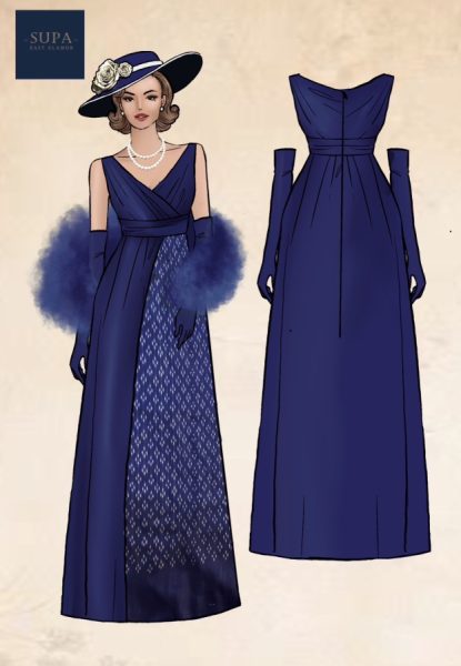 ที่ได้แรงบันดาลใจ จากฉลองพระองค์ในสมเด็จพระนางเจ้าสิริกิติ์พระบรมราชินีนาถ พระบรมราชชนนีพันปีหลวงในช่วงต้นรัชกาลที่ 9 พ.ศ. 2503 ที่ทรงใช้ในการตามเสด็จเยือนอเมริกาและยุโรป มาประยุกต์แบบในการจัดแฟชั่นครั้งนี้