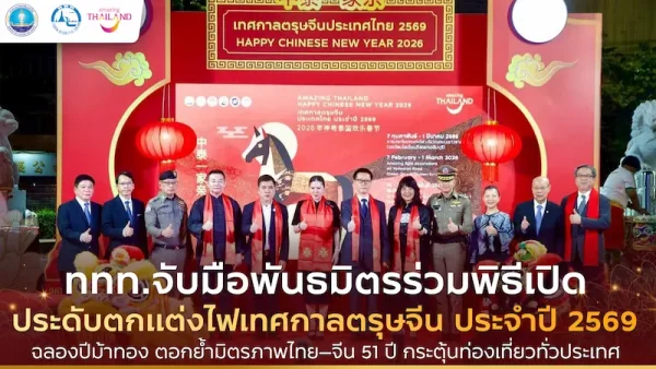 ททท. คาดว่าในช่วงเทศกาลตรุษจีนปีนี้ จะกระตุ้นการเดินทางนักท่องเที่ยวต่างชาติเดินทางเข้าประเทศประมาณ 1.25 ล้านคน สร้างรายได้รวมราว 42,000 ล้านบาท เพิ่มขึ้นร้อยละ 13 เมื่อเทียบกับปีก่อน สะท้อนความเชื่อมั่นและศักยภาพของประเทศไทยในฐานะจุดหมายปลายทางที่พร้อมต้อนรับนักท่องเที่ยวจากทั่วโลกอย่างอบอุ่นและปลอดภัย