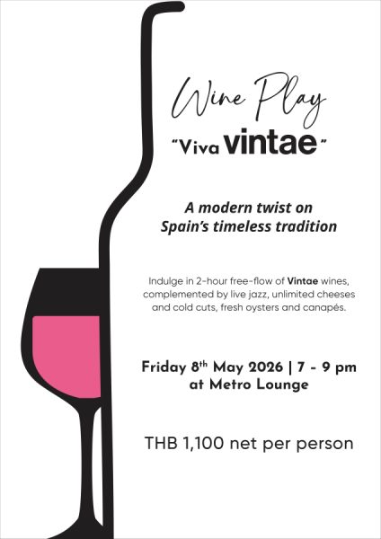 24 เมษายน 2569, กรุงเทพฯ – โรงแรมอวานี รัชดา กรุงเทพฯ (Avani Ratchada Bangkok) บริหารโดย AVANI ในเครือไมเนอร์ ซึ่งเป็นหนึ่งในธุรกิจของ บริษัท ซี.พี.แลนด์ จำกัด (มหาชน) หรือ CPLAND ชวนคุณร่วมเดินทางไปสัมผัสกลิ่นอาย และรสชาติอันเป็นเอกลักษณ์จากประเทศสเปน ในงาน “Wine Play – Viva Vintae” ค่ำคืนที่รวบรวมแรงบันดาลใจจากวัฒนธรรม และแหล่งผลิตไวน์ชั้นเลิศมาถ่ายทอดในมุมมองร่วมสมัย วันศุกร์ที่ 8 พฤษภาคม 2569 เวลา 19.00 – 21.00 น. ณ เมโทร เลานจ์ (Metro Lounge)