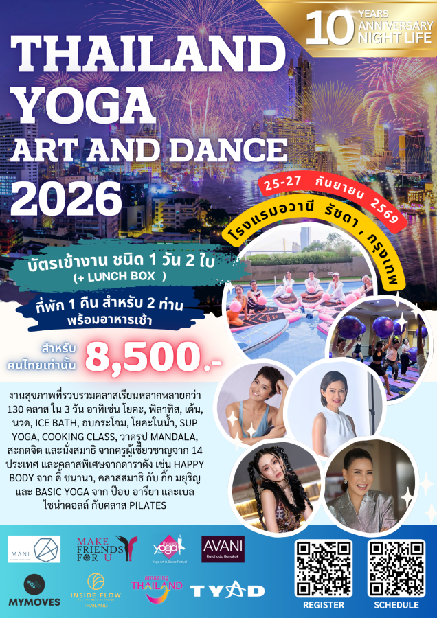 มาดูแลสุขภาพกันกับคลาสออกกำลังกาย ทั้งกาย และใจ ในงาน TYAD ครบรอบ 10 ปี ที่จะจัดขึ้นในวันที่ 25-27 กย 2569 ที่ รร อวานี รัชดา