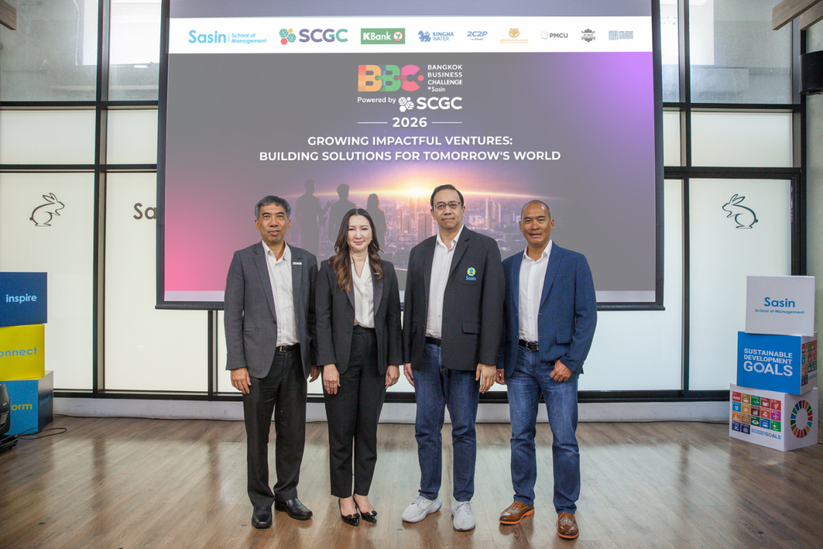 กรุงเทพฯ, 23 เมษายน 2569 – สถาบันบัณฑิตบริหารธุรกิจ ศศินทร์ แห่งจุฬาลงกรณ์มหาวิทยาลัย (Sasin School of Management) ผู้จัดงานการแข่งขันประกวดแผนธุรกิจ Bangkok Business Challenge 2026 Powered by SCGC ซึ่งได้รับการสนับสนุนหลักอย่างเป็นทางการจาก เอสซีจี เคมิคอลส์ หรือ SCGC ผู้นำธุรกิจพอลิเมอร์และโซลูชันครบวงจรเพื่อความยั่งยืน ธนาคารกสิกรไทย (KBank) และบริษัท บุญรอดบริวเวอรี่ จำกัด ร่วมด้วย Ecosystem Partner ได้แก่ 2C2P, มูลนิธิแม่ฟ้าหลวง ในพระบรมราชูปถัมภ์, สำนักงานจัดการทรัพย์สิน จุฬาลงกรณ์มหาวิทยาลัย, บริษัท สราญรมย์เคเทอริง จำกัด และเครือข่ายแอสเพนเพื่อผู้ประกอบการเพื่อการพัฒนา เดินหน้าจัดเวทีการแข่งขันสำหรับนิสิต-นักศึกษาจากทั่วโลกได้ร่วมแสดงศักยภาพเป็นปีที่ 24 นำเสนอแนวคิดและแผนธุรกิจภายใต้แนวคิด “Growing Impactful Ventures: Building Solutions for Tomorrow’s World” มุ่งผลักดันไอเดียนวัตกรรมใหม่ที่ขับเคลื่อนด้วยแนวคิดด้านความยั่งยืน (Sustainability) และนวัตกรรมสีเขียว (Green Innovation) ซึ่งไม่เพียงสร้างการเติบโต แต่ต้องสร้างผลกระทบเชิงบวก